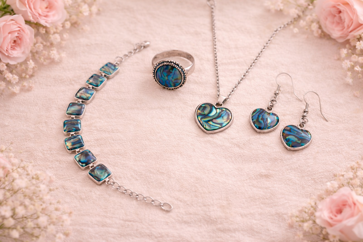 Experience the calming beauty of the ocean with our Abalone Shell Jewelry Combo Set a complete, perfectly matched collection designed for balance, elegance, and everyday wear. Crafted with premium abalone shell and silver-toned settings, this exclusive combo delivers refined style, symbolic meaning, and exceptional value in one thoughtfully curated set.