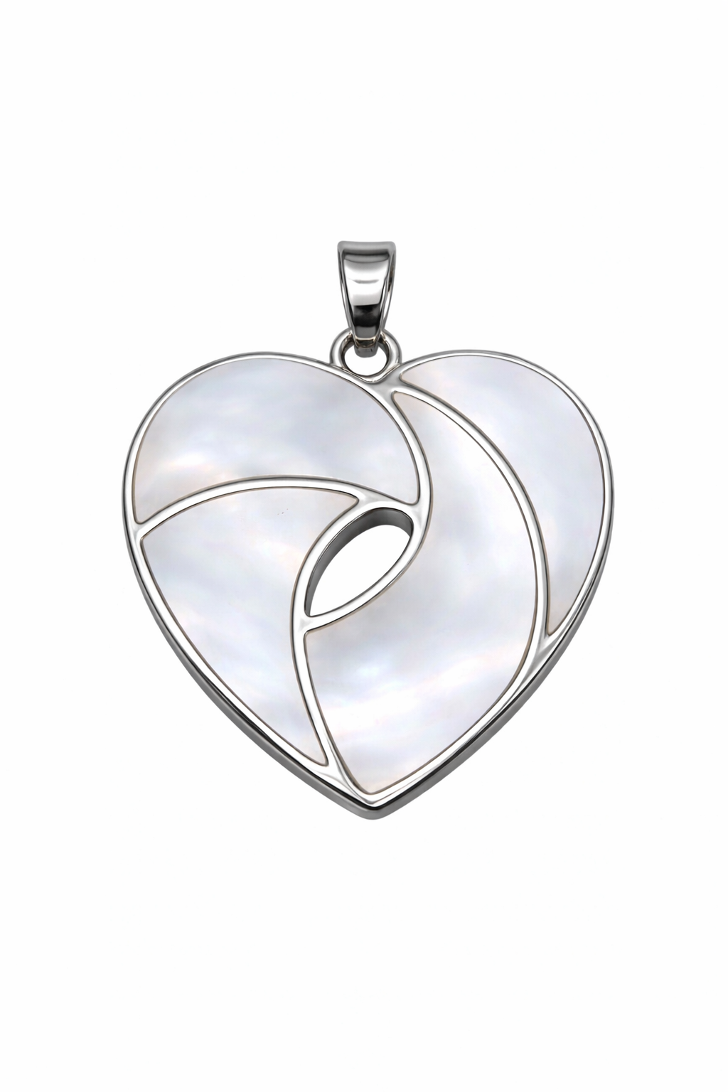 This Mother of Pearl Inlay Heart Pendant features a contemporary open-work heart design crafted with smooth, iridescent shell inlay and a polished metal outline. The natural nacre reflects soft hues of white and pastel tones, giving the pendant a refined, elegant appearance. Its fluid, abstract pattern symbolizes emotional flow, harmony, and connection, making it suitable for both everyday wear and meaningful gifting.