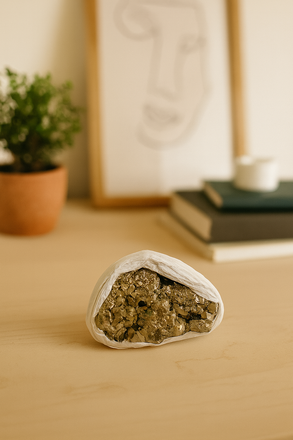 The Golden Pyrite Cluster is a striking natural formation known for its shimmering metallic luster. Valued by collectors and practitioners for its unique crystalline structure, this cluster enhances energy flow and supports mental clarity. Its robust composition makes it an excellent addition for both display and metaphysical use, promoting confidence and focus in daily activities.