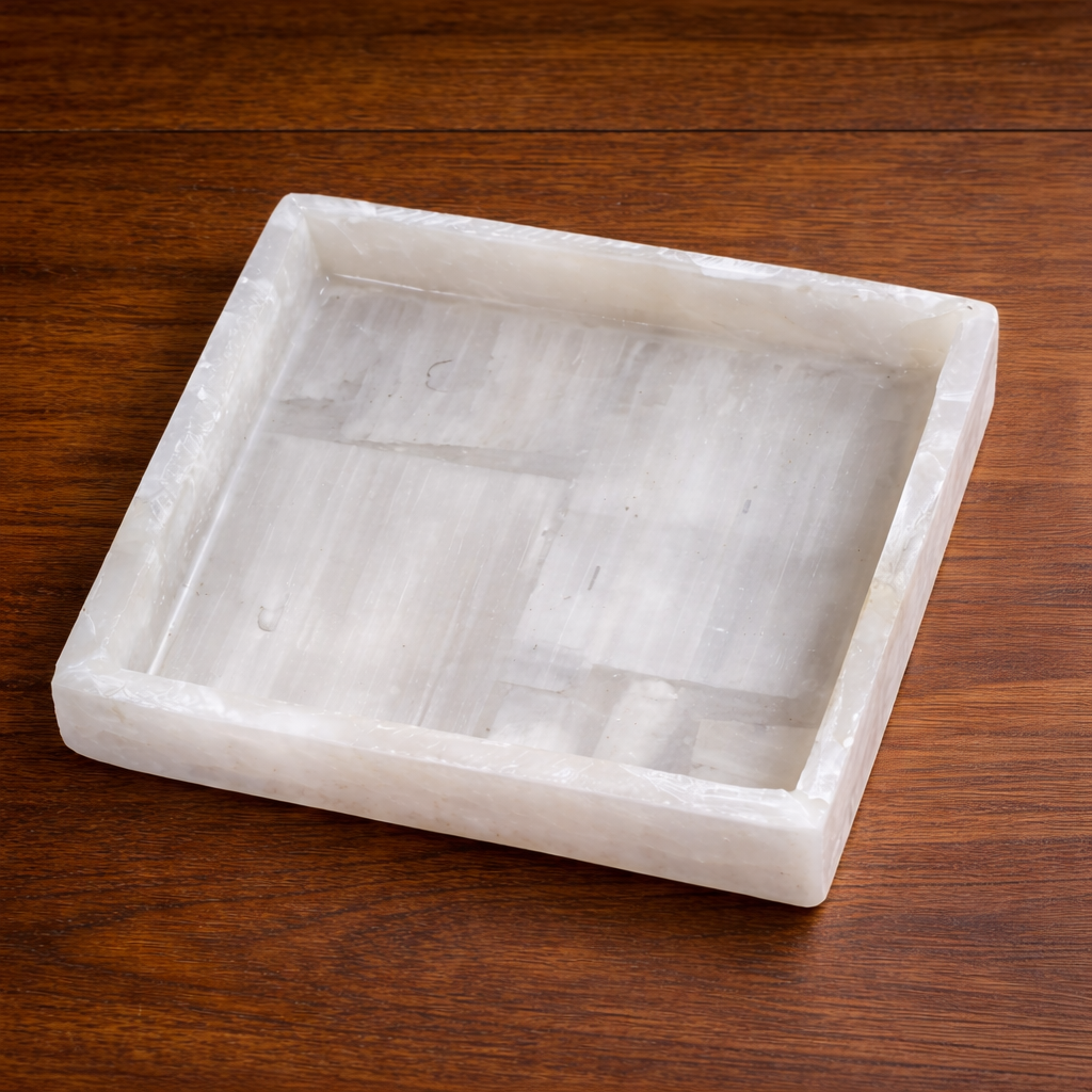 This Natural White Selenite Tray is a powerful energy cleansing tool designed to purify your space, calm the mind, and restore positive vibrations. Known for its self-cleansing properties, selenite absorbs negative energy while promoting clarity, emotional balance, and spiritual harmony. Perfect for crystal charging, jewellery cleansing, meditation practice, and elegant home décor, this handcrafted tray blends spiritual function with refined natural beauty, making it an essential addition to conscious living spaces.
